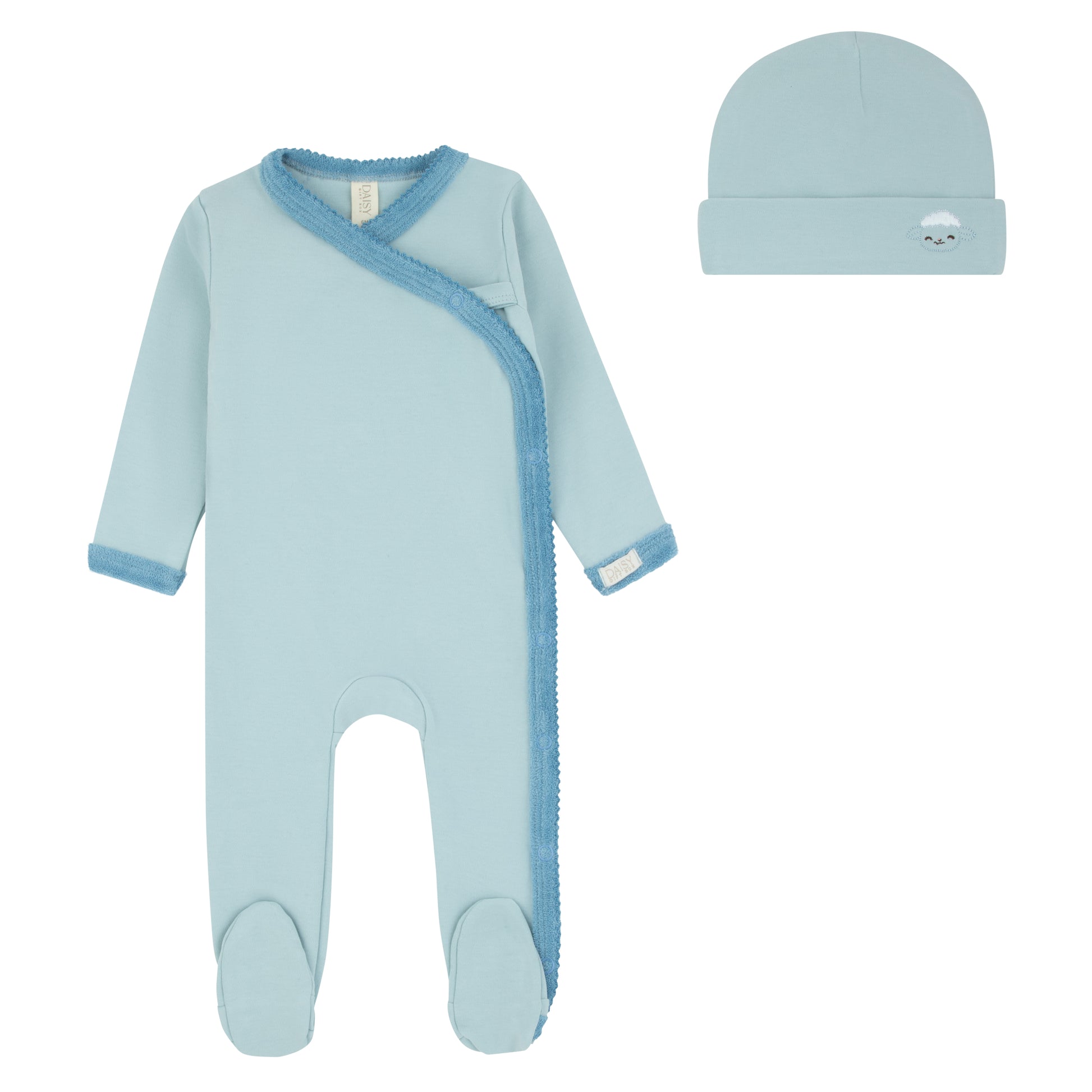 Kimono Footie Embroidery Blue